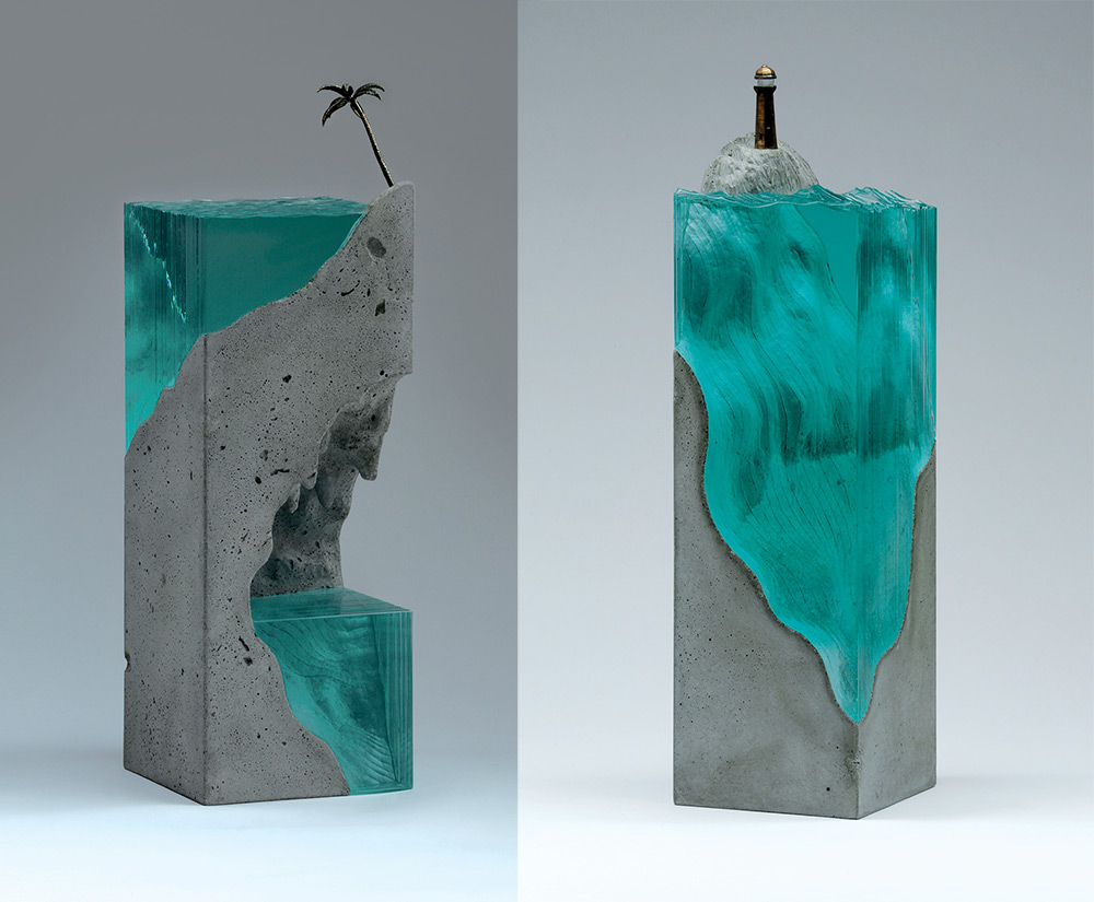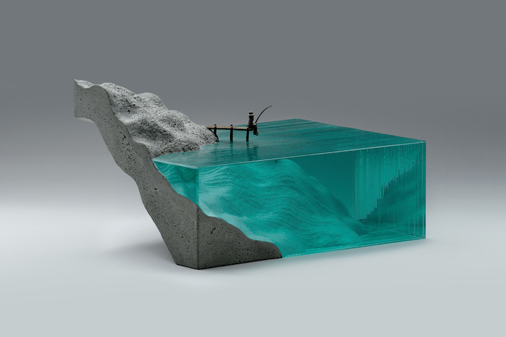 Self-taught artist Ben Young depicts the beauty of the ocean, building realistic translucent glass seascapes. Influenced by industrial design and architecture, New-Zealand-based glass artist draws his creative approach from years of surfing on the northern coast of the island and from his experience as a boatbuilder. Exploring the art of sculpting with glass completely crafted by hand, Ben Young likes to highlight the spontaneity and the imperfections of this man-made process. He took us on a tour of his geometric islands.