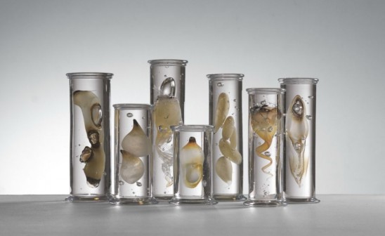 Danish artist Steffen Dam casts glass to look as though it contains sea creatures and jellyfish in tubes. The glass panels, blocks and crystal cylinders are ...