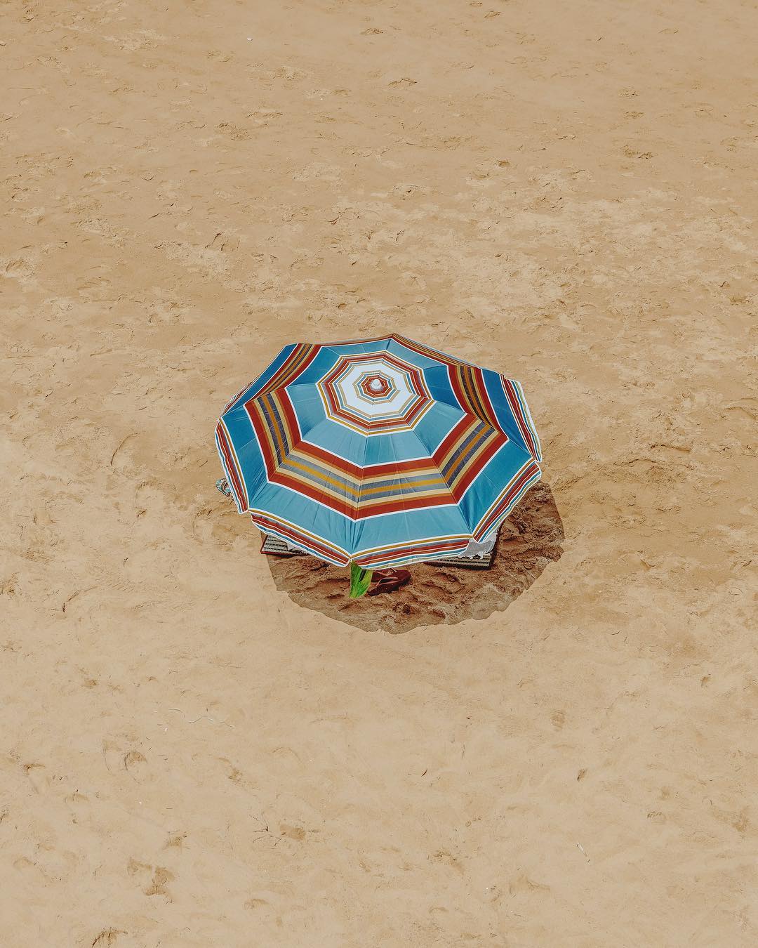 Umbrellas, beach chairs, swimmers, buoys, towels and crowded beaches looking like small dots in the sand… Through soft pastel colors, Yosigo’s beach-related visuals look like David Hockney’s serial paintings of swimming pools. Gaining height, the basque photographer reminds us that the ocean and the sea have always been a central element in his life. «Seeing the horizon deeply calms me down. It's like being at home even when I’m away.»