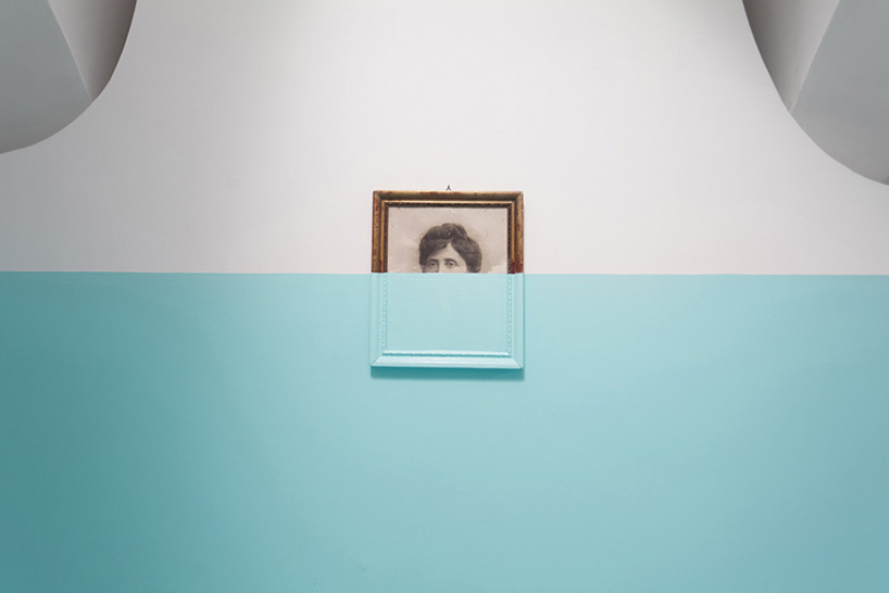An eclectic assortment of paintings and objects sourced from vintage stores, flea markets, antique shops and junkyard in Rome, hang on the walls of the Ex-Elettrofonica gallery. « From the process of immersion of the objects in the paint stems a reflection on a stretch of common history, that of things, and this gives rise to another, much deeper one, on what remains beyond the end of material. »D’Elia says. Half-immersing objects in an aseptic blue hue is an experimental method of creation in canceling natural process and freezing any proliferation of life.