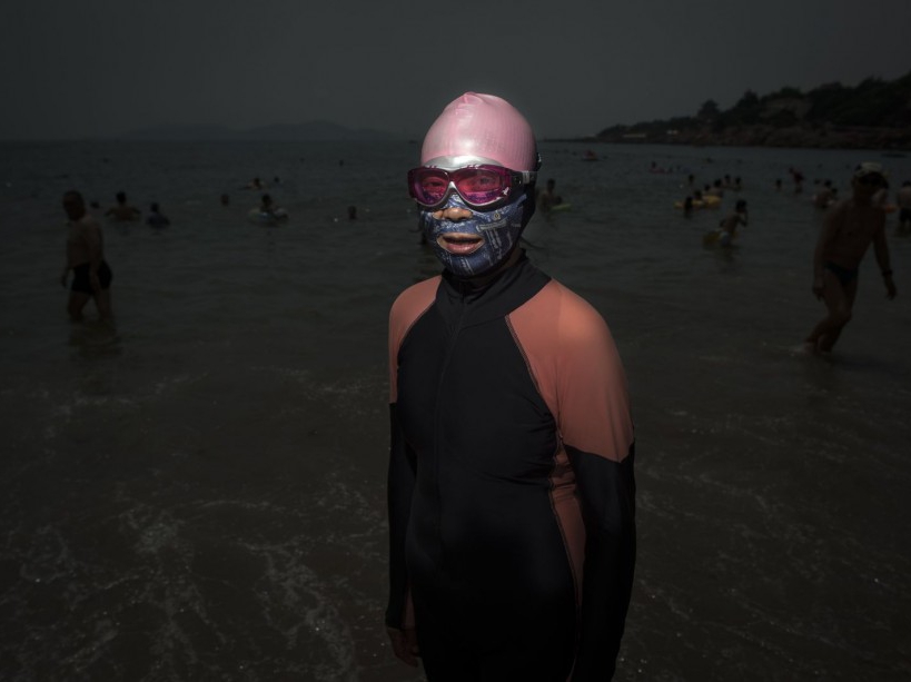 The inventor, former accountant Zhang Shifan, never imagined she would sell 30,000 of them. Sometimes they are worn with long-sleeved swimsuits, a full body wetsuit, and gloves up to the elbow. The masks are very popular in the city of Qingdao where they also protect beach-goers from jellyfish stings, insect bites and regular algae blooms in the Yellow Sea.