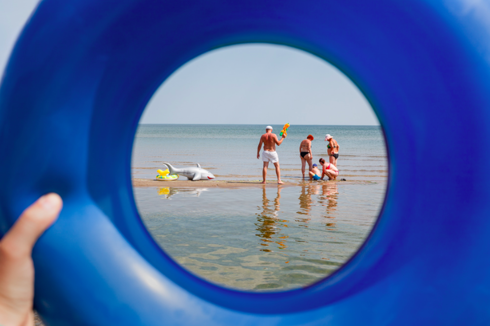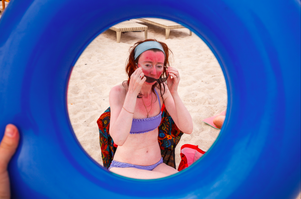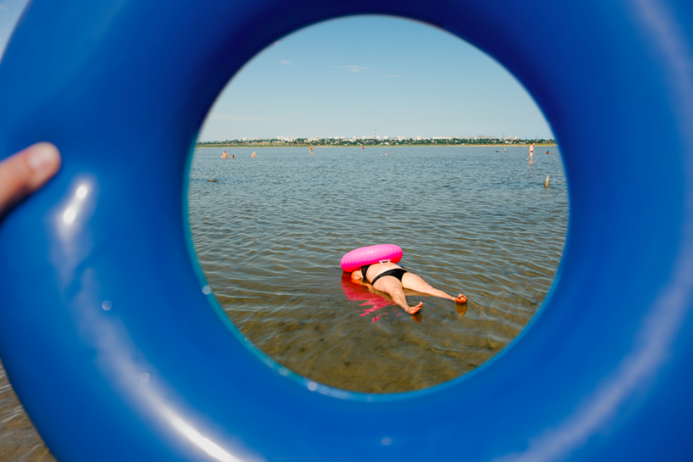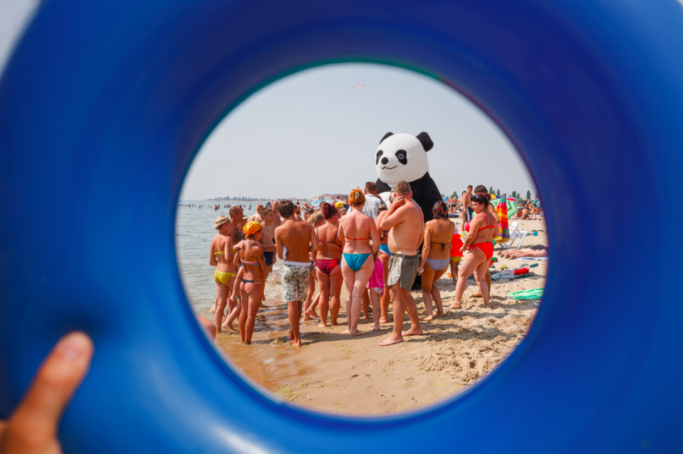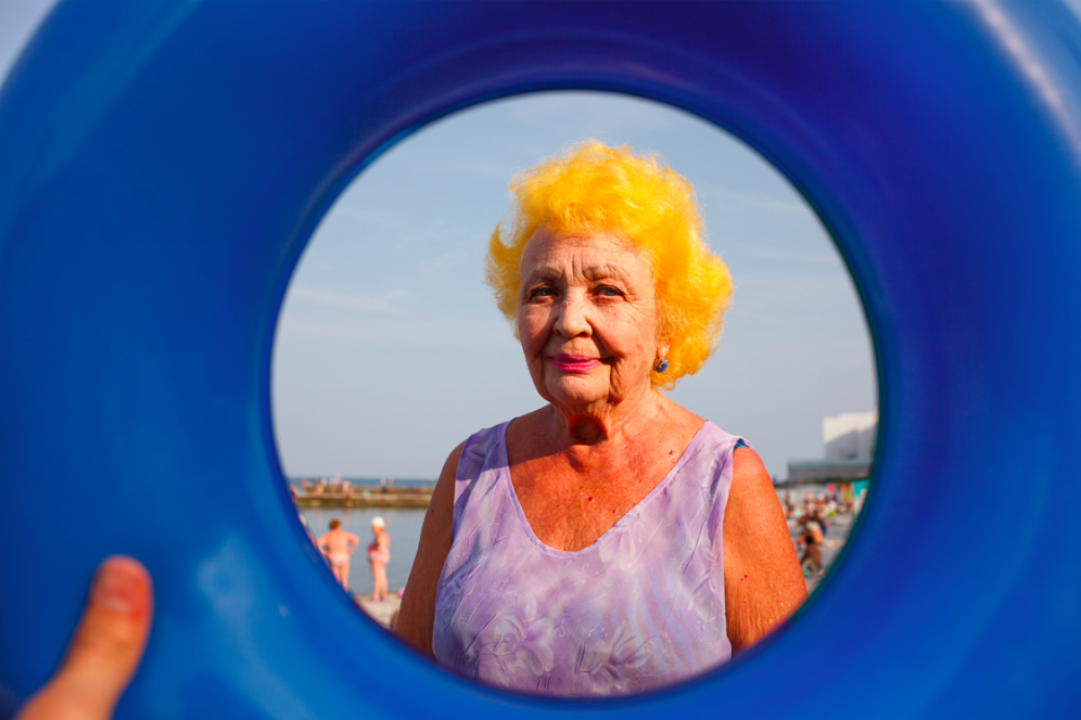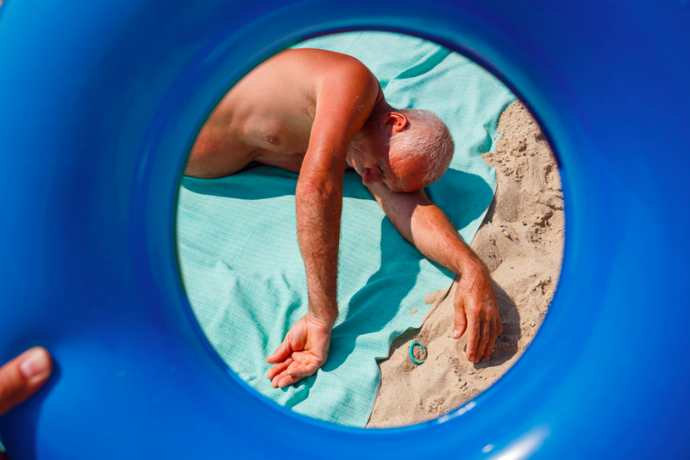 "The circular image it created reminds me of a ship’s porthole. Also, the circle resembles a telescope lens and had a touch of the voyeuristic about it. It fits the beach, and not just as a formal device. For me, the tyre helped me learn to swim. At the beach you watch others and they watch you. I did my watching through this ‘hole’. It seemed spontaneous and fun while taking the photos. There was something of the performance about it and yet I also felt invisible as a consequence," explains Golovchenko whose series has been awarded the European Photo Exhibition Award. "The swimming ring conceals you, isolates you, but also makes you visible. It helps you focus, both as the photographer and as the observer. It’s like a pin-hole, a spotlight illuminating a certain situation for a brief moment. What’s important is that the viewer recognizes the shape of the swimming tyre and when viewing the images is taken to another level, one between staged reality and documented reality."