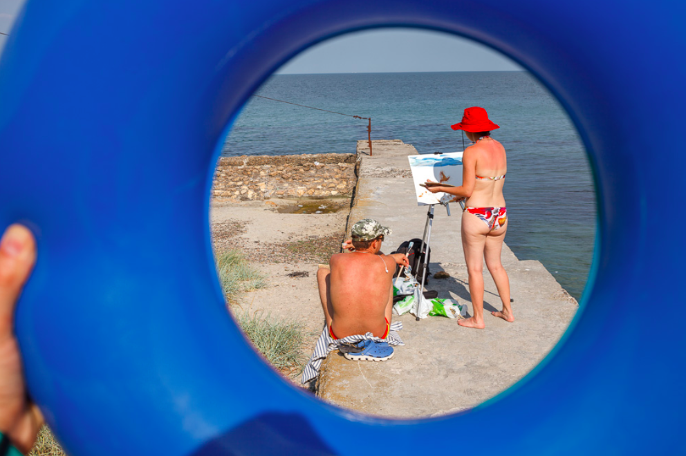 Ukraine-born photographer Kirill Golovchenko grew up along the Black Sea, in the town of Odessa, the country's fourth-largest city. Inspired by his childhood spent along the Black Sea coast, his latest series of pictures draws the parallel of the beach, described by the artist as a public place of freedom and the poeple who go there. "People go to the beach, take off their clothes, lie down next to other people they don’t know, swim, eat, tan, and drink. It’s a great feeling on the seaside, calming and threatening at the same time. Life on the beach is very varied. The beach is a universal theme and in this case part of the cultural world of the Ukraine."